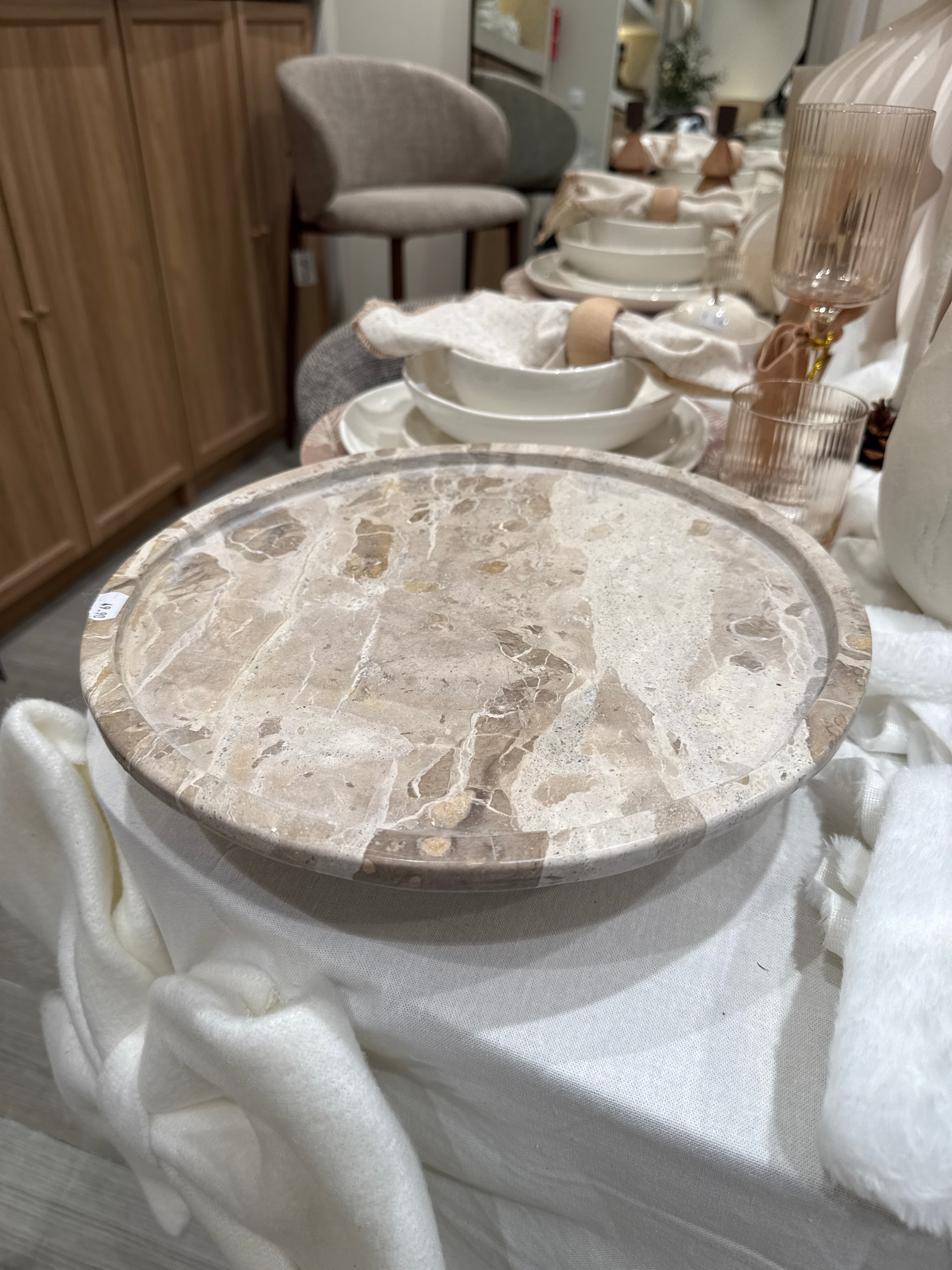 Sublimez vos douceurs avec ce plat à gâteaux en marbre beige, aux nuances naturelles et délicates. Sa surface lisse et élégante met en valeur vos pâtisseries tout en apportant une touche raffinée et chaleureuse à votre table. Un indispensable déco-gourmand, parfait pour créer une ambiance cosy lors de vos moments de partage.