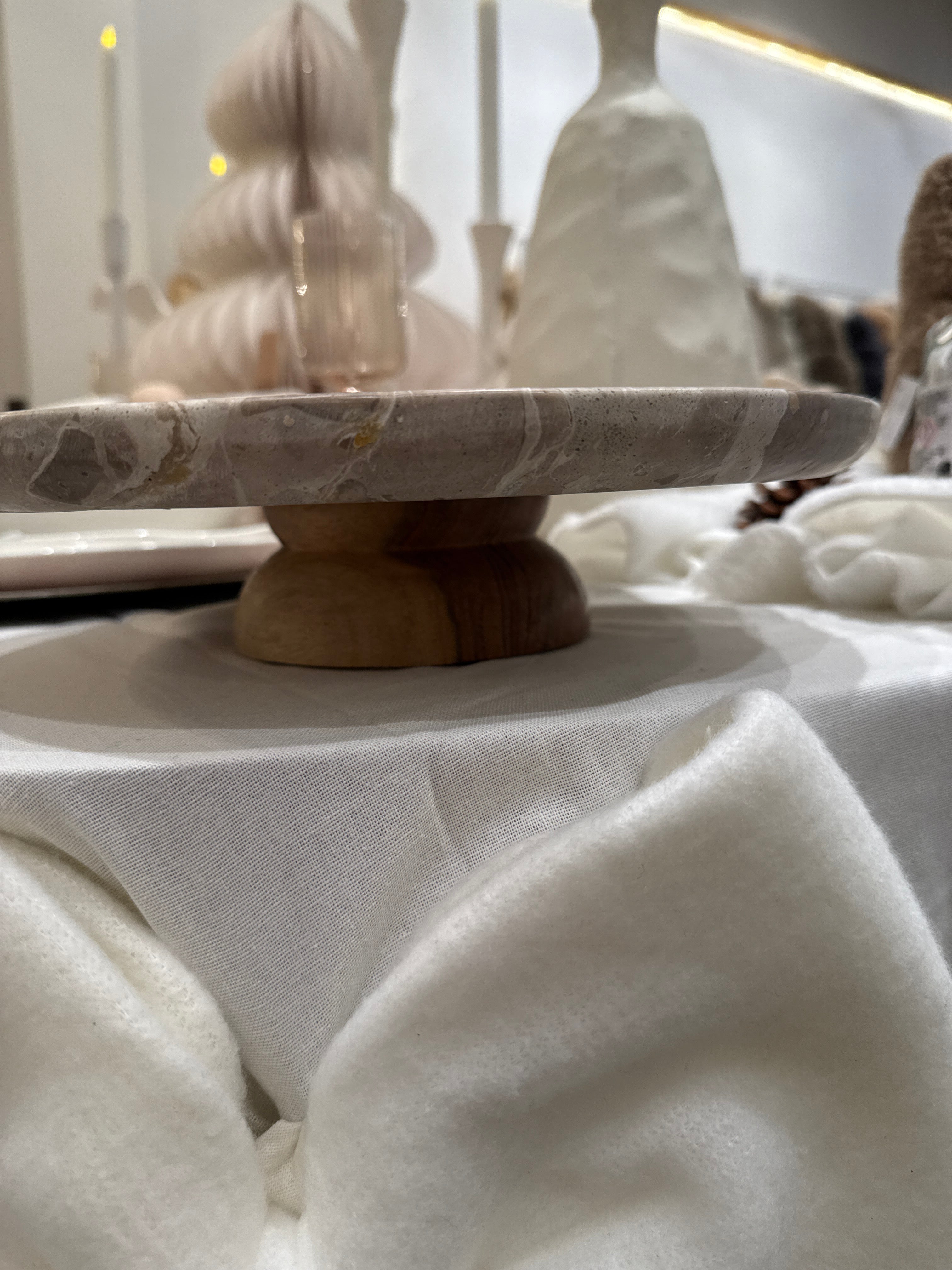 Plat À Gateaux Rond Marbre Beige/Naturel